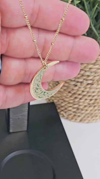 Hilalin ince detayları ve altın kaplamanın sıcak ışıltısı, kolyeye modern bir lüks dokunuş katar.